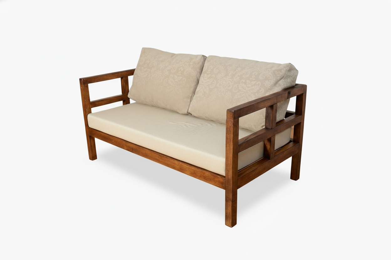 Ovaj dvosjed kombinira čvrstu hrastovu konstrukciju i udobne jastuke za dugotrajan boravak gostiju. Elegantne linije i prirodni materijal stvaraju opuštenu, toplu atmosferu. Idealan za lounge prostore, hotele i terase, ali i domaćinstva.